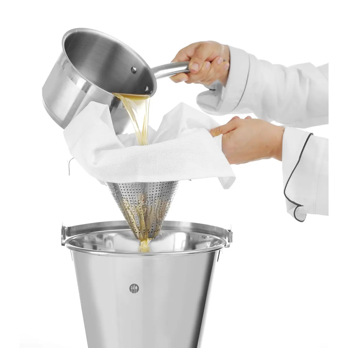 Pânza pentru strecurat – 700×700 mm | Hendi 556719 este concepută pentru filtrarea supelor, sosurilor sau sucurilor în bucătării profesionale HoReCa și acasă. Datorită bumbacului 100% cu structură fină, reține eficient particulele mici și asigură un rezultat clar, fără impurități. Se poate spăla la temperaturi de până la 95 °C, garantând un nivel ridicat de igienă și o durată lungă de viață chiar și la utilizare zilnică.