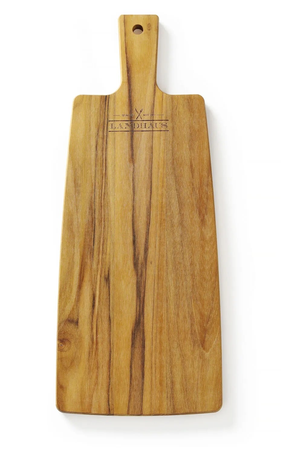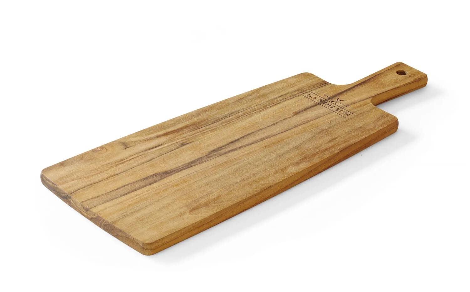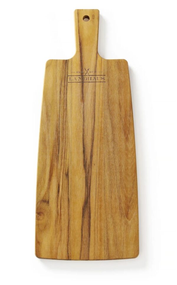 Placa de tăiat din gama Landhaus de la Tramontina este ideală pentru tocat, feliat și servirea brânzeturilor sau gustărilor. Acest tip de placă protejează lama cuțitelor de bucătărie și poate fi folosită pentru a așeza obiecte fierbinți (oale, cești, tigăi), protejând astfel masa sau blatul de bucătărie. Mânerul practic cu orificiu pentru agățare facilitează utilizarea zilnică.