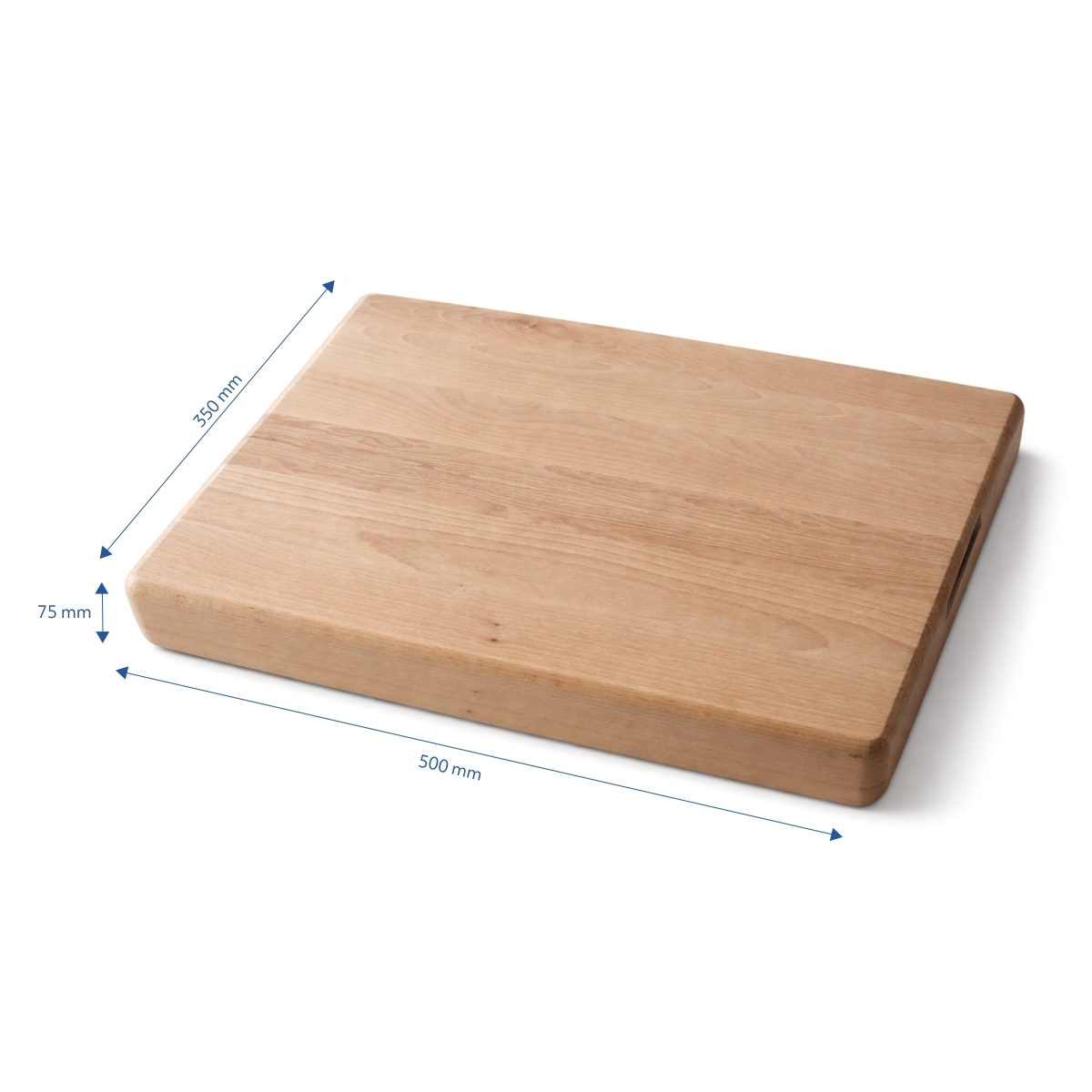 Placă de tăiat robustă din lemn de fag, cu dimensiunile de 50 × 35 cm și grosime de 7,5 cm, ideală pentru utilizare zilnică în bucătărie. Datorită construcției solide și mânerelor laterale pentru o manipulare mai ușoară, este perfectă atât pentru tăierea ingredientelor, cât și pentru baterea cărnii.