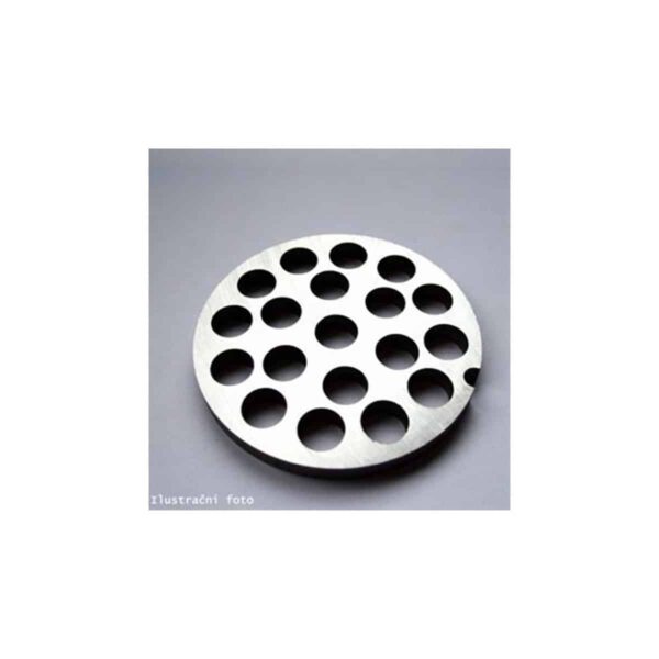 Placa pentru mașina de tocat 10 – 10 | KDS 5250 este produsă de compania cehă KDS și este un accesoriu pentru mașina de tocat carne Porkert 10. Diametrul găurilor este de 10 mm și este ideală pentru tocarea cărnii în bucăți mai mari, de exemplu pentru cârnați. Pentru a asigura o durată de viață cât mai lungă, producătorul recomandă spălarea plăcii cu apă caldă după utilizare, uscarea completă și depozitarea într-un loc uscat și ferit de umezeală. Duritatea minimă garantată este de 50 HRc.