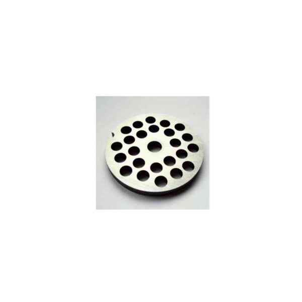 Placa pentru mașina de tocat 10 – 8 | KDS 5240 este produsă de compania cehă KDS și este un accesoriu pentru mașina de tocat carne Porkert 10. Diametrul orificiilor este de 8 mm și se folosește pentru tocat carne, fructe și legume. Pentru a asigura o durată de viață cât mai lungă, producătorul recomandă ca după utilizare placa să fie spălată cu apă caldă, uscată bine și depozitată într-un loc uscat și ferit de substanțe agresive. Duritatea minimă garantată este de 50 HRc.