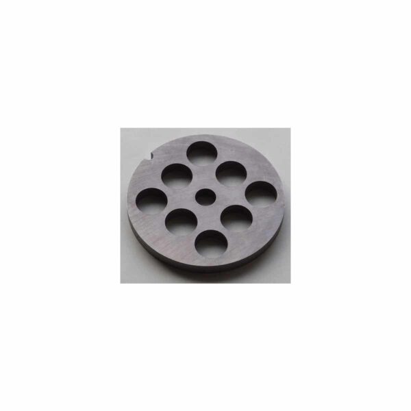 Placa pentru mașina de tocat 32 – 20 | KDS 5490 este produsă de compania cehă KDS și este un accesoriu pentru mașina de tocat carne Porkert 32. Diametrul găurilor este de 20 mm, fiind perfectă pentru tocat carne în bucăți mai mari – ideală pentru procesarea cărnii acasă. Pentru a asigura o durată de viață cât mai lungă, producătorul recomandă ca după utilizare placa să fie spălată cu apă caldă, uscată bine și depozitată într-un loc uscat și ferit de umezeală. Duritatea minimă garantată este de 50 HRc.
