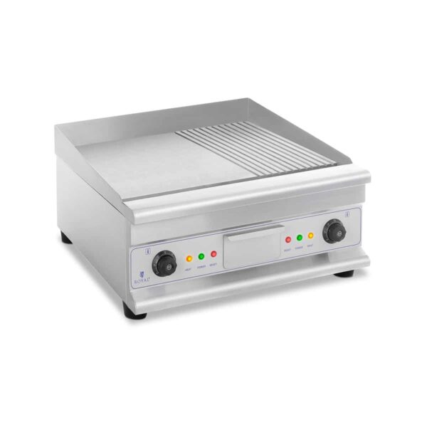 Plita de grill – striată/netedă 60 cm de la Royal Catering este perfectă pentru restaurante, cafenele, fast-food-uri, hoteluri și catering, dar și pentru uz casnic. Modelul RCG-60GB este ideal pentru prăjirea cărnii (fripturi suculente, burgeri gustoși, bacon, dar și cârnați, ouă, clătite și toast franțuzesc).