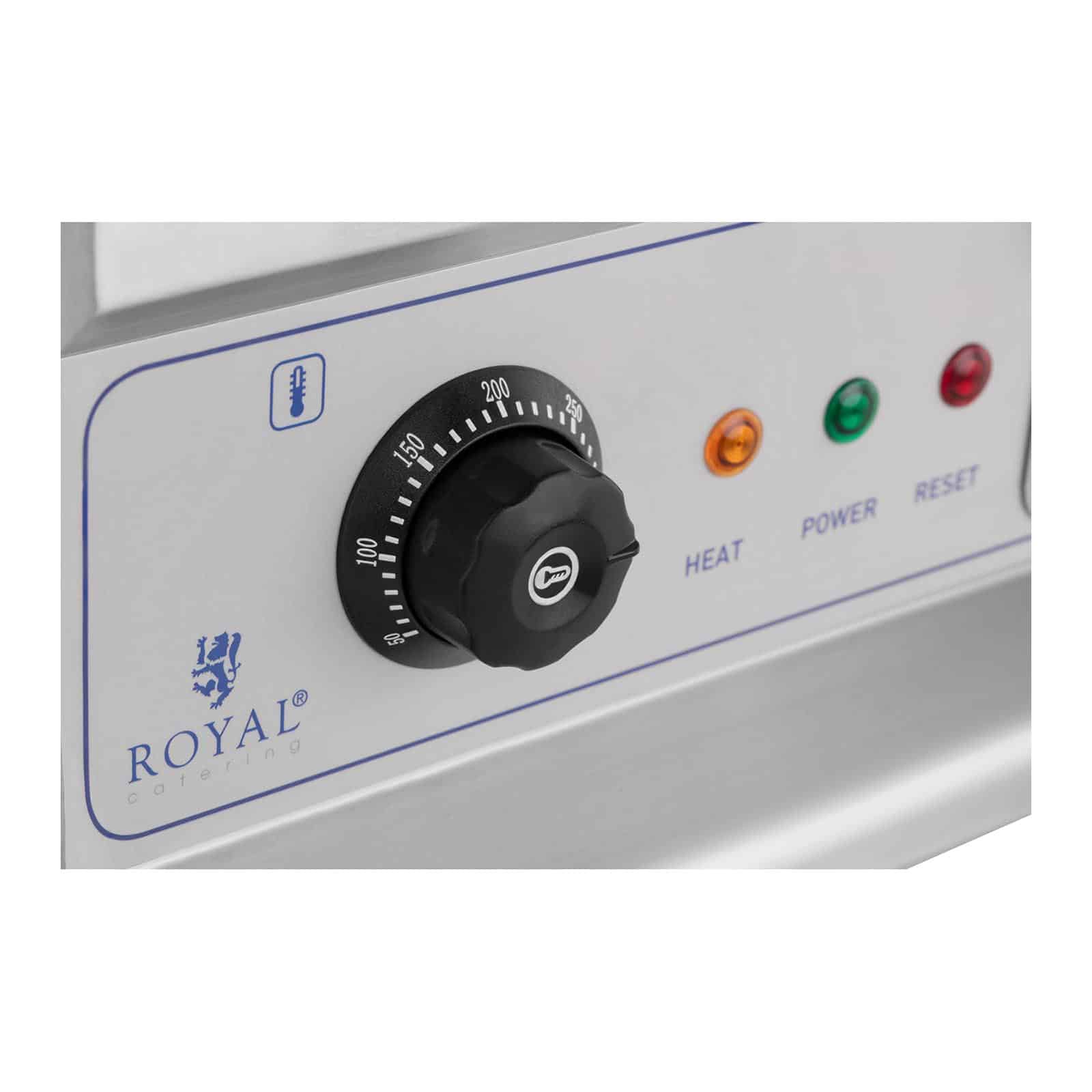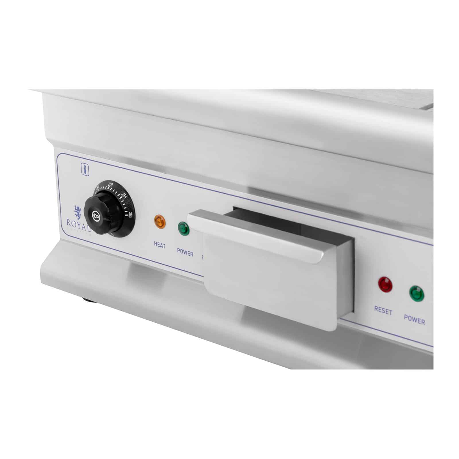 2 elemente de încălzire eficiente, cu 2 x 3200 W, permit atingerea rapidă a temperaturii de lucru. Termostatele mențin temperatura dorită între 50 și 300 °C. Reglarea precisă se face cu ajutorul butoanelor. Astfel, plita Royal Catering permite prepararea simultană a mai multor feluri de mâncare. Funcționarea aparatului este semnalizată prin indicatoare luminoase: verde, portocaliu și roșu. Siguranța integrată protejează plita împotriva supraîncălzirii.