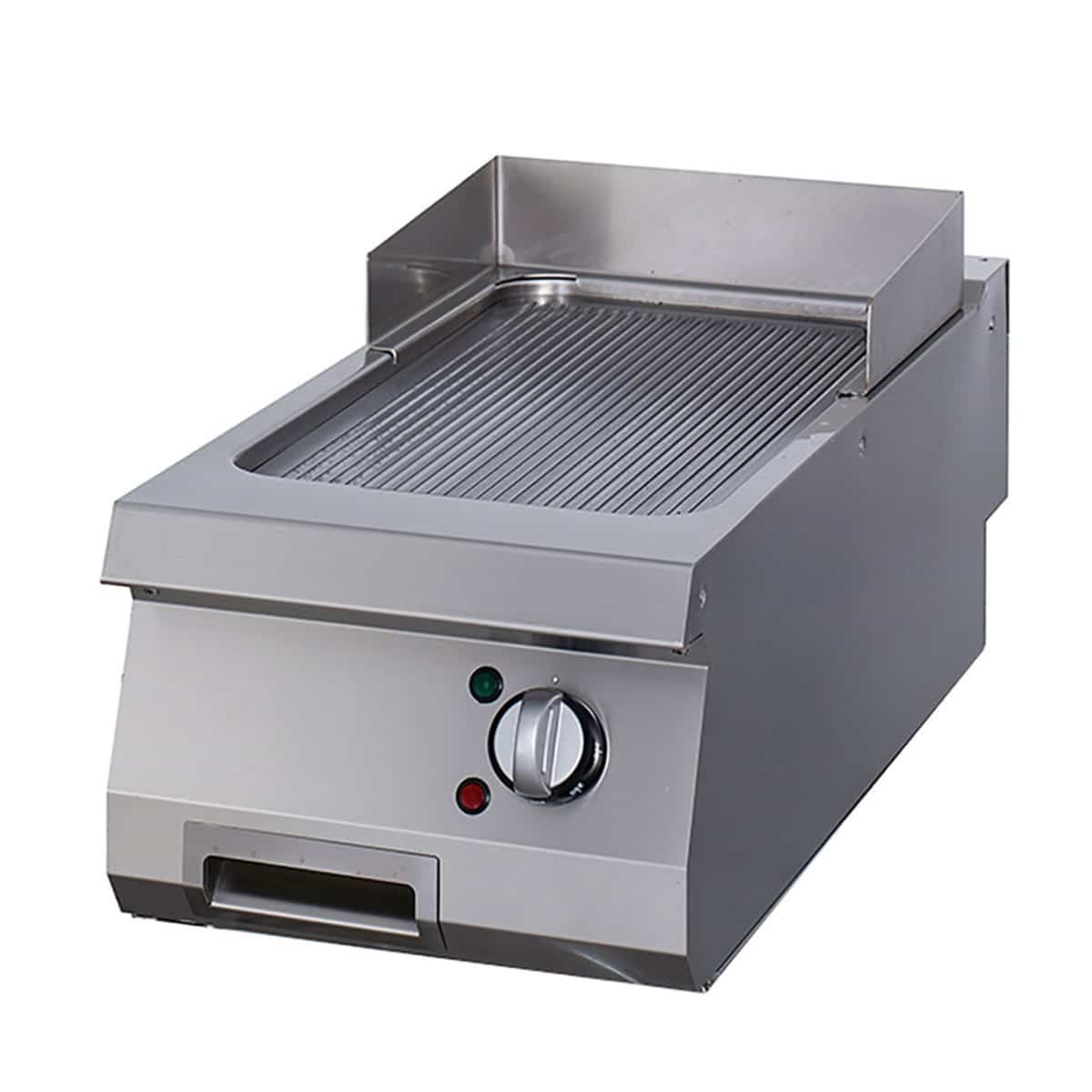 Plita grill Premium are suprafață striată pentru gătit și este ideală pentru producție intensivă și utilizare zilnică în bucătării profesionale. Suprafața de gătit este realizată din oțel cu grosime de 15 mm și finisaj satinat.