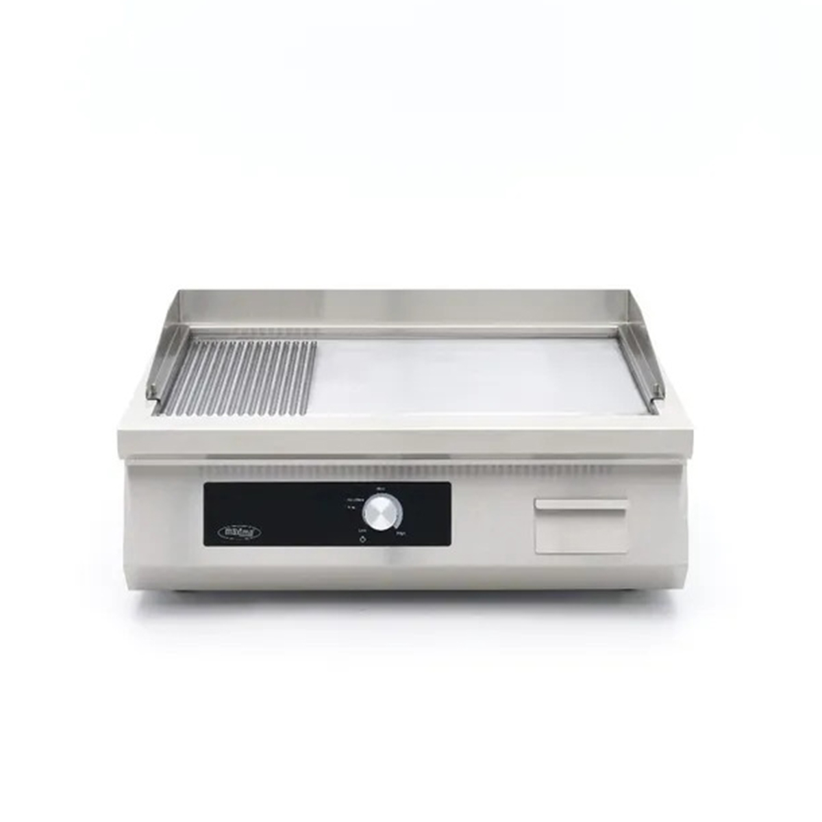 Plita grill 700 – 5000 W – netedă/striată | Maxima 09371200 este destinată preparării cărnii, peștelui, legumelor, ouălor și altor preparate la grill. Combinația dintre suprafața netedă și cea striată permite utilizarea flexibilă pentru diferite tipuri de ingrediente, în timp ce reglarea precisă a temperaturii asigură control optim în timpul gătitului. Construcția din oțel inoxidabil rezistent garantează durabilitate ridicată și o viață lungă de utilizare chiar și în exploatare intensivă zilnică.