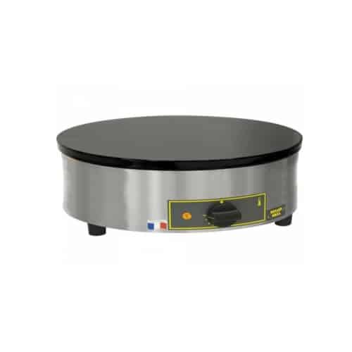 Plita pentru clătite CFE 400 (diametru plită 400 mm) este special concepută pentru piețe, standuri, rulote, camioane sau restaurante care prepară clătite la evenimente, festivaluri, târguri etc. Gătire perfect uniformă, fără pierderi de căldură pe margini. Elementul de încălzire spirală, poziționat direct sub plita din fontă emailată, poate genera o putere de 3,6 kW (conectare simplă) și asigură distribuția omogenă a căldurii pe suprafața plitei. Termostatul reglează temperatura plitei între 90 și 280 °C.