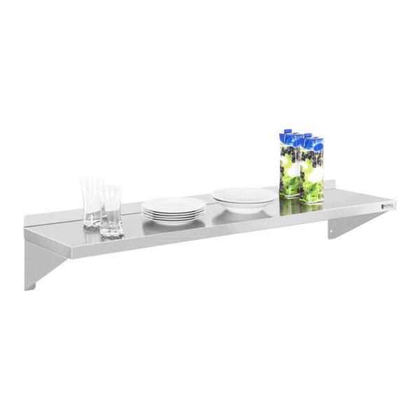 Pe polița de perete RCWR-120 de la Royal Catering puteți organiza eficient ustensilele de bucătărie precum oale, vase și ingrediente. Cu o lungime de 120 cm și o adâncime de 30 cm, vă ajută să mențineți ordinea în orice bucătărie profesională. Montajul poliței de perete se realizează rapid, fiind compusă din trei piese ușor de asamblat cu șuruburile incluse și apoi fixată pe perete. Datorită montării pe perete, economisiți spațiu valoros și beneficiați de libertate maximă de mișcare și utilizare optimă a spațiului de lucru. Spre deosebire de un dulap închis, aveți acces rapid la obiectele de pe poliță ori de câte ori aveți nevoie. Datorită suporturilor oblice de sub poliță, cu grosime de 3,5 cm, aceasta oferă o stabilitate excelentă. Polița suportă chiar și obiecte grele. Este fabricată din oțel inoxidabil de calitate superioară, cu un design modern și ușor de curățat. Polița este destinată în special pentru dotarea bucătăriilor profesionale din domeniul HoReCa.