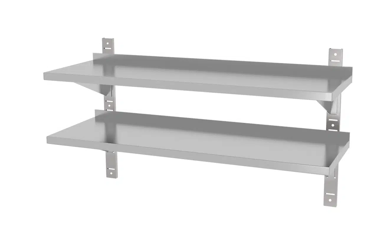 Polița de perete cu 2 rafturi reglabile, 1000x300x600 mm | Hendi 811726 este un accesoriu ideal pentru orice bucătărie profesională, oferind 2 rafturi ajustabile pentru o organizare eficientă. Se montează pe perete.