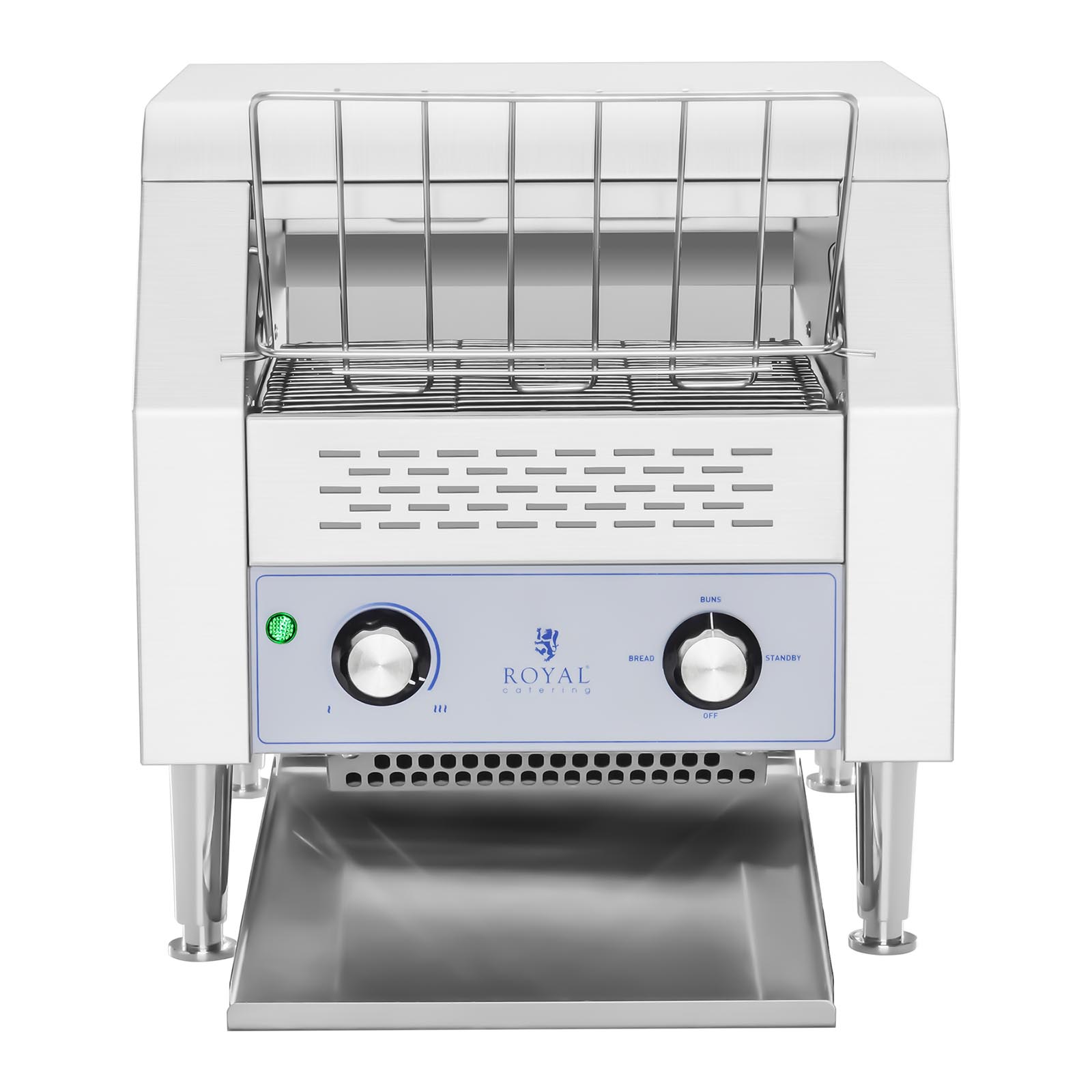 Prăjitorul de pâine – 2200 W | RCKT-1940 de la Royal Catering este ideal pentru prepararea rapidă a toastului la brunch și își găsește locul în restaurante, cafenele, hoteluri, pensiuni și brutării. Dispune de 7 trepte de viteză diferite, care vă permit să prăjiți pâinea exact așa cum doriți. Treapta 1, cu viteză mare, este perfectă pentru toasturi mai deschise la culoare, permițând prepararea a până la 720 de felii pe oră. Cu cât selectați o treaptă mai înaltă, cu atât gradul de rumenire este mai intens, deoarece pâinea petrece mai mult timp în aparat. La treapta 3 puteți obține până la 420 de toasturi mediu rumenite pe oră, iar la treapta 7 maximum 180 de toasturi foarte crocante.
