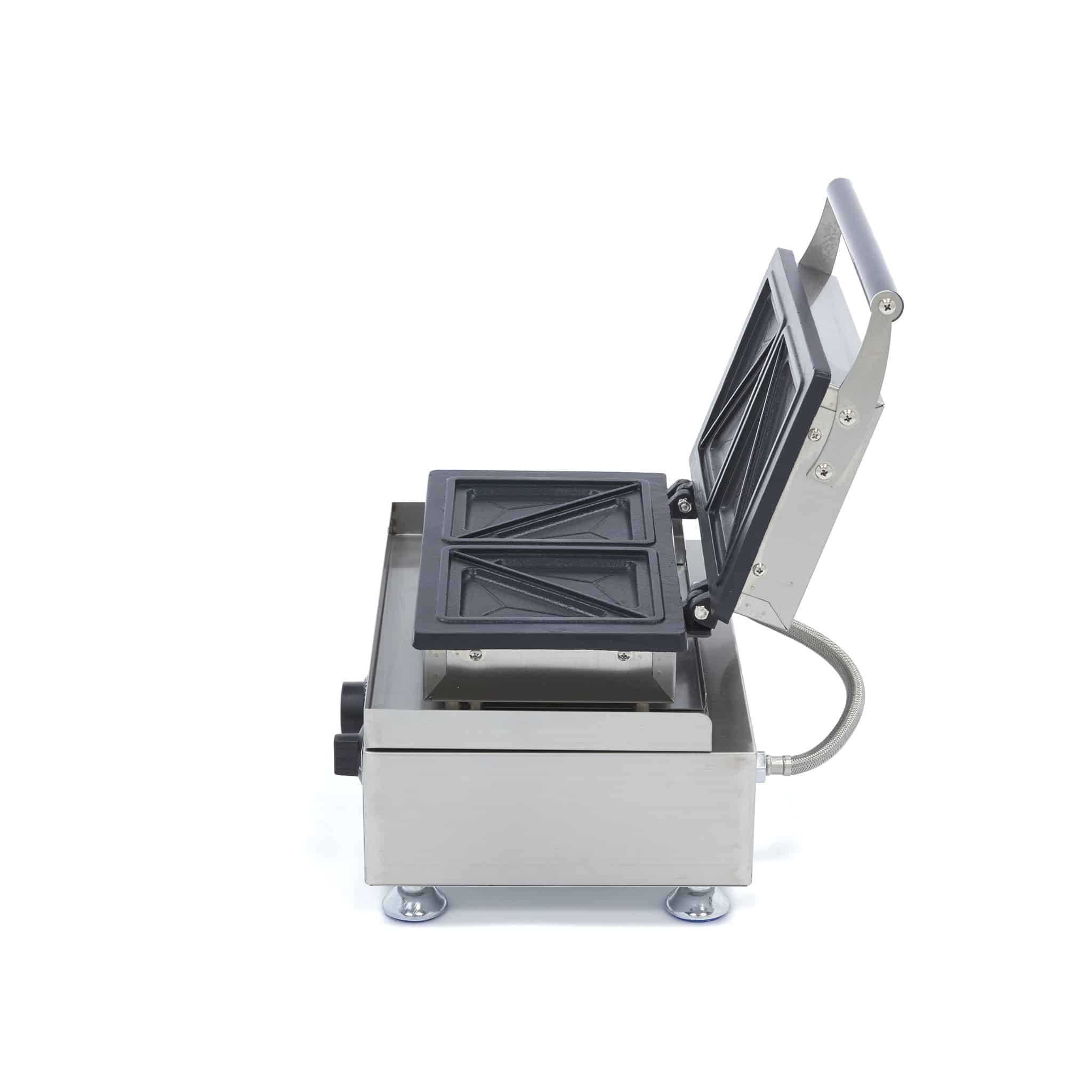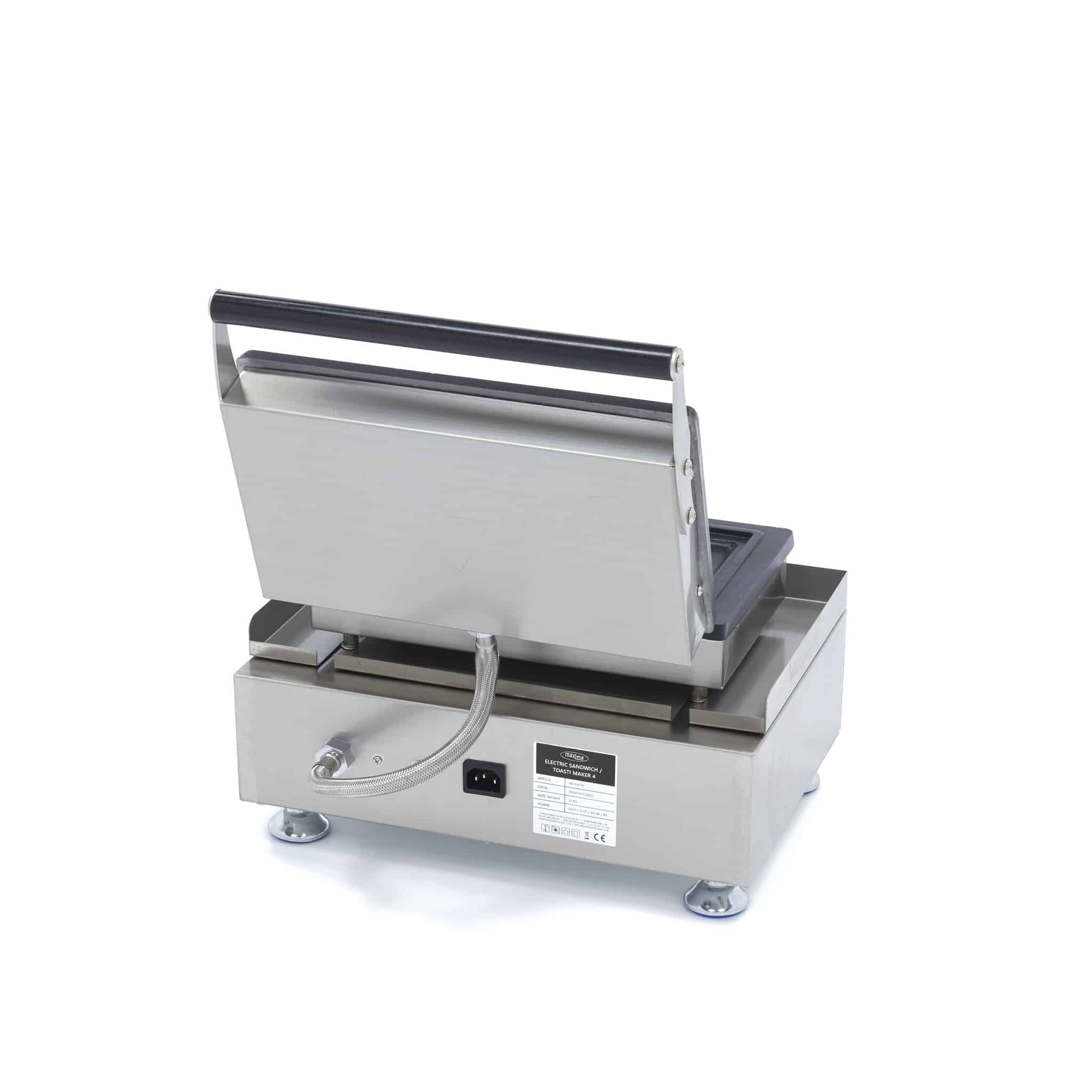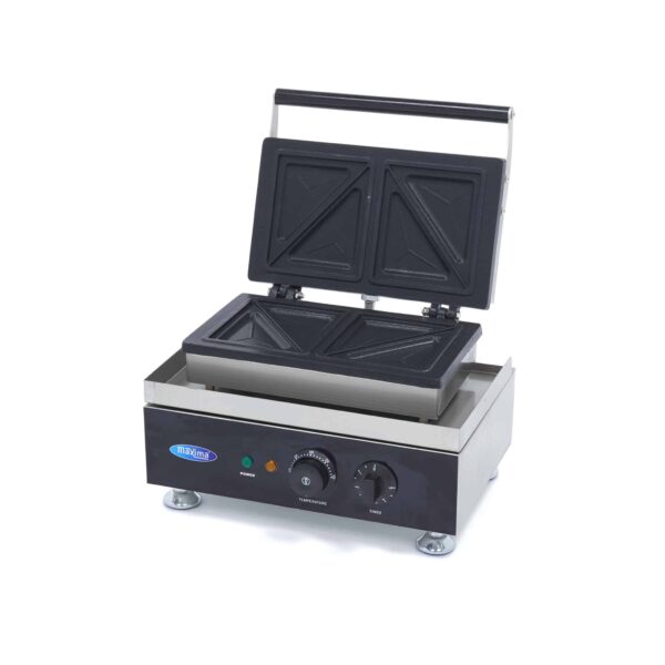Cu acest prăjitor electric puteți prepara rapid și ușor 2 sandvișuri delicioase. Aparatul este de calitate superioară și, datorită dimensiunilor compacte, este ideal pentru cantine, restaurante, baruri sau cafenele. Are plăci din fontă cu strat antiaderent, care asigură o distribuție optimă a căldurii. Exteriorul este realizat din inox, ceea ce îl face rezistent și ușor de curățat.