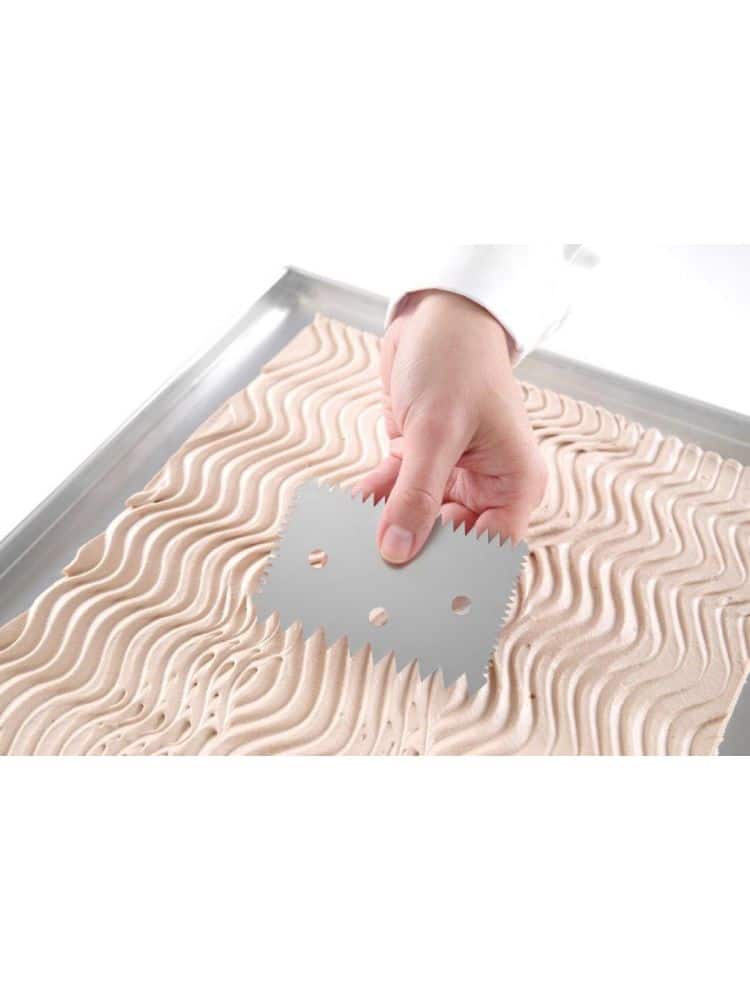 Racleta patiserie-cofetărie tip pieptene – 102×69 mm | 554234 este un instrument decorativ pentru cofetari, perfect pentru prăjituri și creme. Este un accesoriu indispensabil în orice laborator de cofetărie.