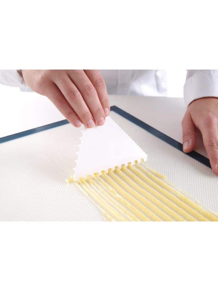 Racleta triunghiulară pentru cofetărie-patiserie – 110 x 110 mm | 554227 este o racletă decorativă pentru cofetari, perfectă pentru prăjituri și creme. Este un instrument indispensabil pentru orice cofetar. Datorită formei sale, este foarte practică și ușor de manevrat. Ideală atât pentru uz profesional, cât și pentru coacere acasă.