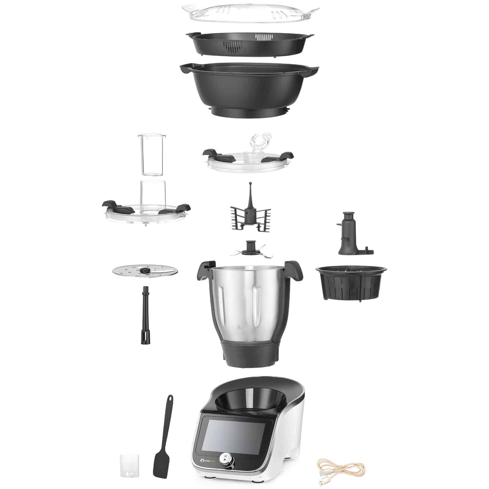 - Vas multifuncțional de 4,5 litri (capacitate utilă 3 l) cu element de încălzire performant, realizat din oțel inoxidabil de calitate, rezistent la coroziune (tehnologie AISI 304)
