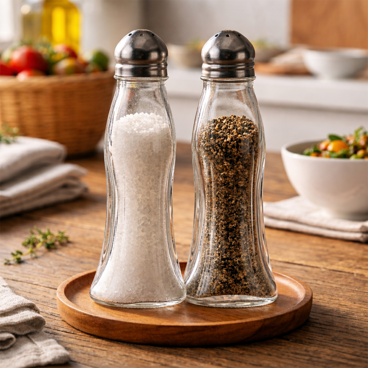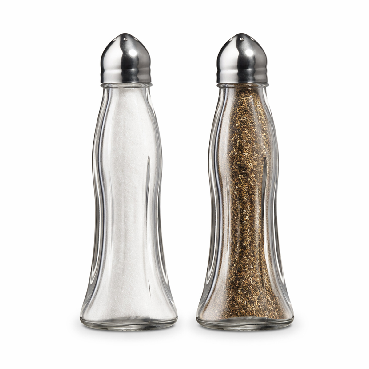 Setul pentru condimente este un accesoriu practic pentru servirea zilnică atât acasă, cât și în locații HoReCa. Setul conține 2 recipiente din sticlă pentru sare și piper, cu capac metalic pentru dozare comodă și precisă.