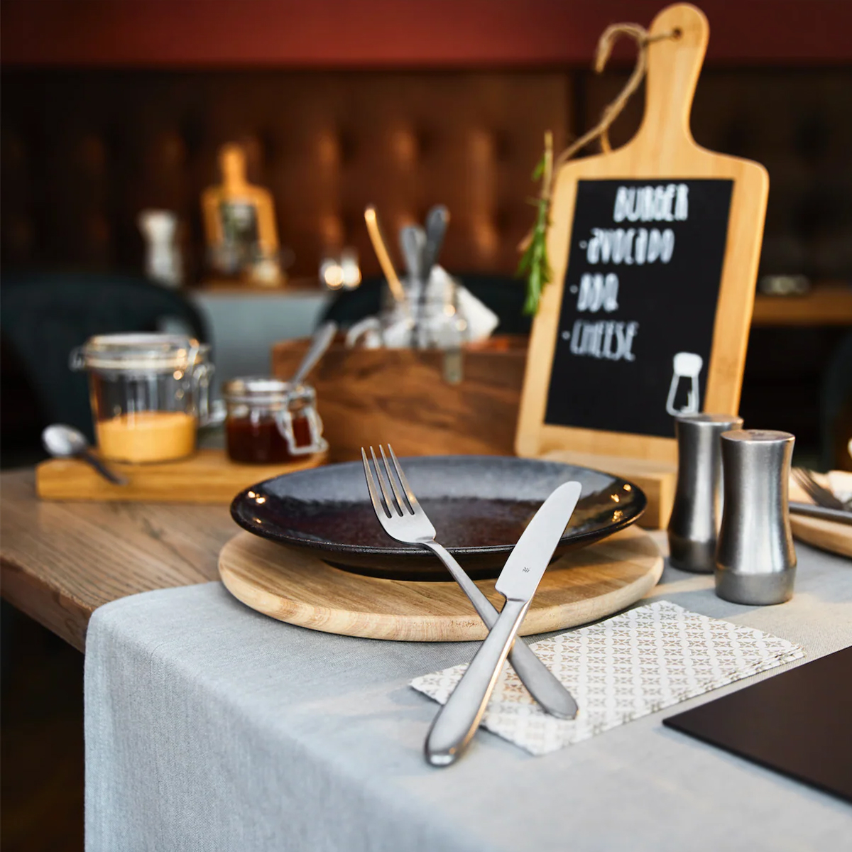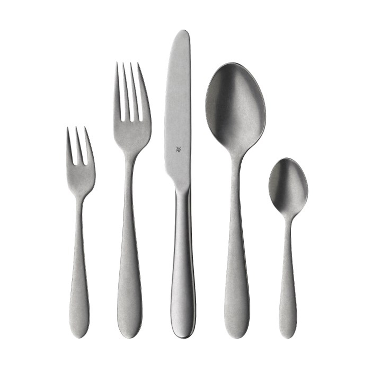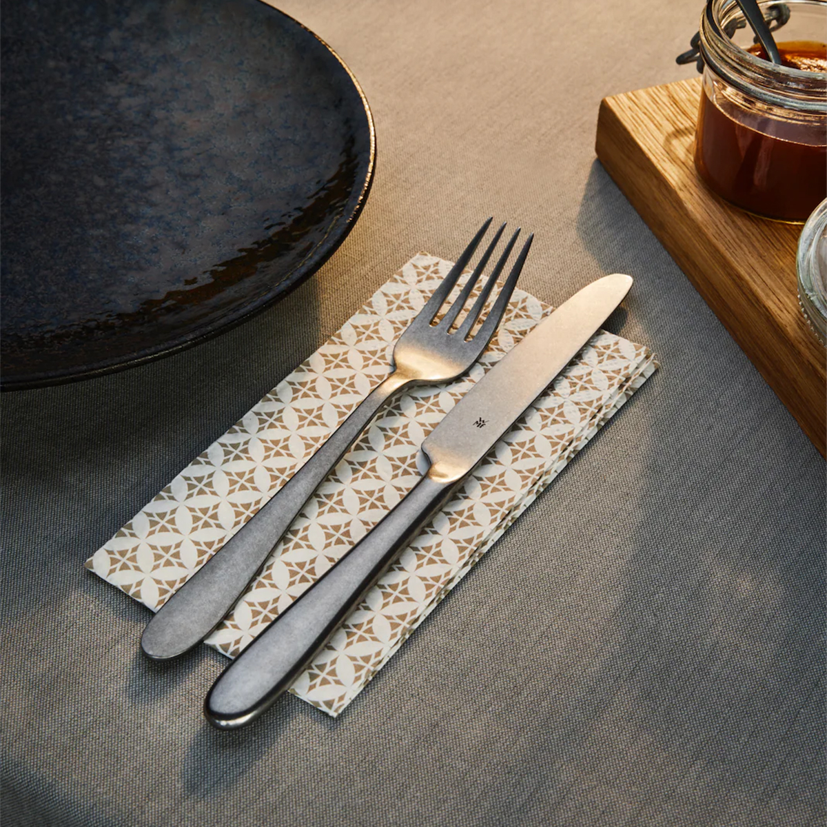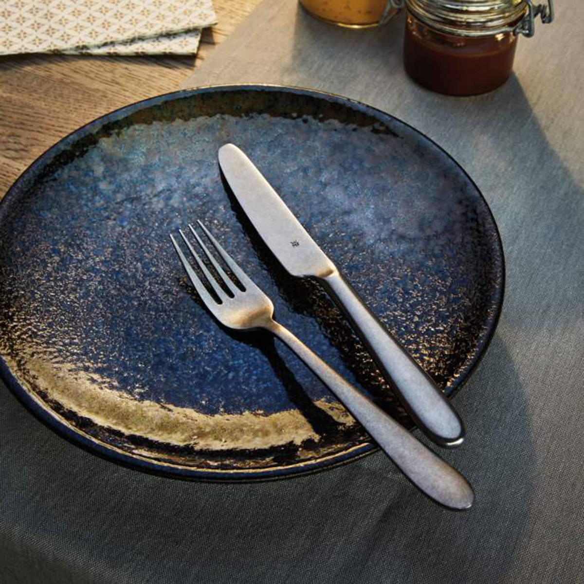 Tacâmurile sunt fabricate din oțel inoxidabil premium Cromargan® 18/10, recunoscut pentru rezistența ridicată la coroziune, acizi alimentari și uzură mecanică. Finisajul Stonewashed conferă tacâmurilor un aspect mat modern și ajută la mascarea zgârieturilor fine.