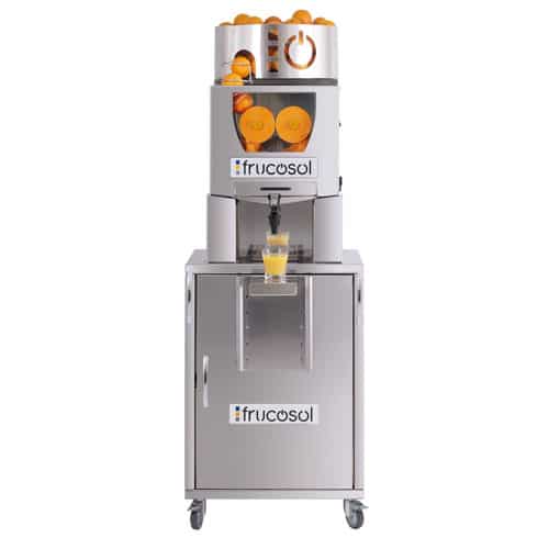 SelfService de la brandul spaniol Frucosol este excelent pentru zonele de servire și este foarte ușor de utilizat, cu pornire și oprire simplă. Acesta este dotat cu suport reglabil pentru pahare și tavă de scurgere ce poate fi poziționată la diferite înălțimi. Modelul dispune și de un spațiu de depozitare util integrat în baza aparatului, unde se pot păstra mai multe portocale sau resturi de pulpă rezultate din procesul de stoarcere.