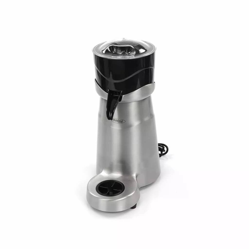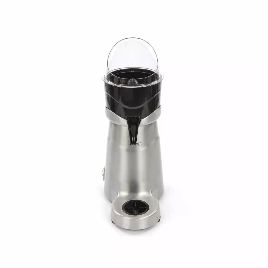 Acest storcător electric vă permite să preparați rapid și ușor cantități mari de suc proaspăt stors. Este un aparat profesional de bucătărie, ideal pentru orice restaurant, cafenea, cantină sau altă unitate HoReCa. Ca model de blat, poate fi așezat cu ușurință pe bar sau pe masă pentru acces rapid. Este potrivit pentru pahare sau sticle de până la 19 cm înălțime, care încap ușor sub gură de scurgere. Storcătorul este ușor de folosit și operat manual. Pur și simplu porniți aparatul și apăsați jumătățile de citrice pe capul de presare. Sucul se colectează într-un recipient din plastic cu cioc, pentru turnare facilă. Acest model XL este echipat și cu protecție împotriva scurgerilor.
