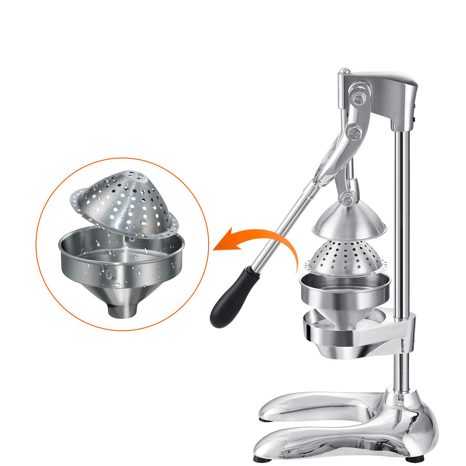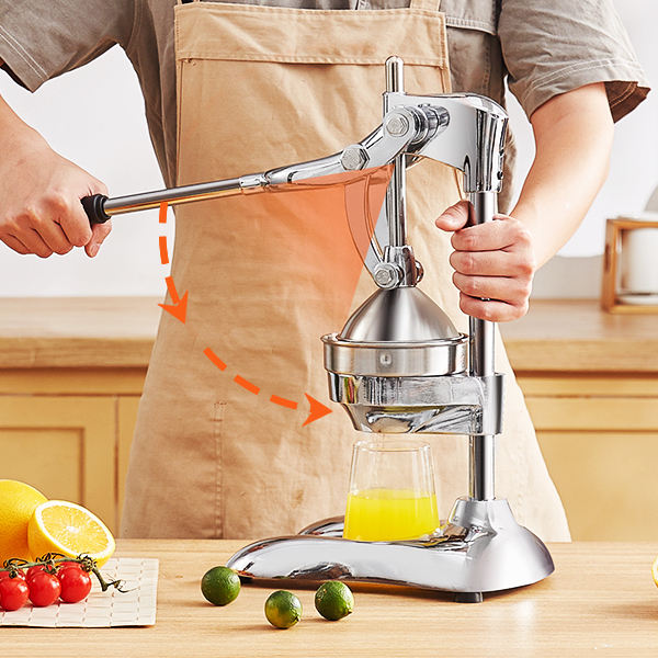 - Cadrul din fier al storcătorului pentru portocale este foarte stabil și rezistă la sarcini mari, atunci când trebuie stoarse cantități mari de citrice. Mânerul lung ajută la transmiterea optimă a forței asupra fructelor.
