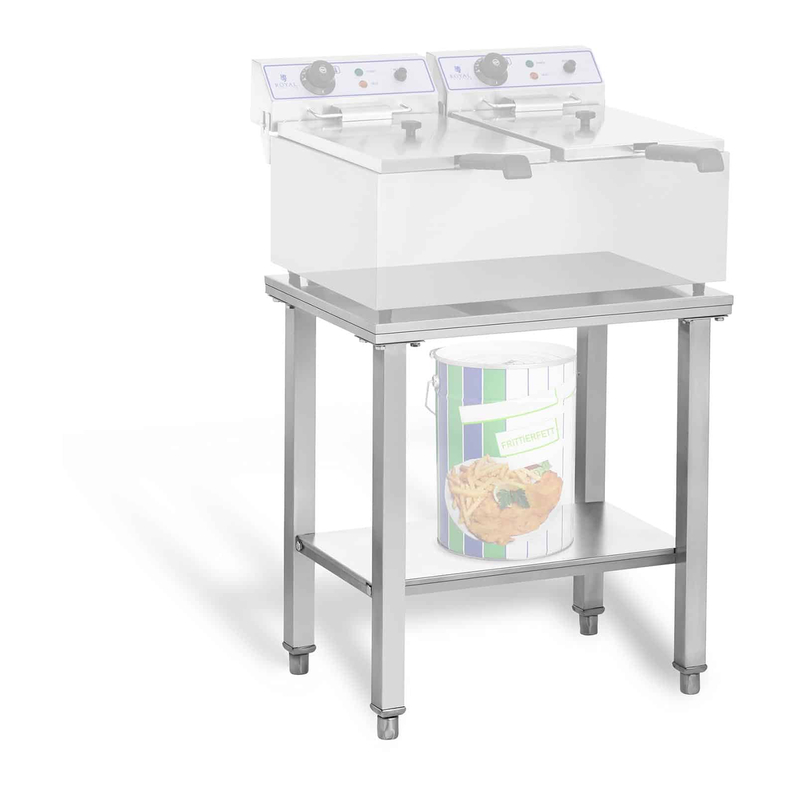 Suportul pentru friteuză – 2×17 l – 62 x 42 cm | RCEF-SET2 de la Royal Catering este ideal pentru utilizare profesională în domeniul HoReCa. Suportul se potrivește perfect în baruri, fast-food-uri, hoteluri etc. Echipamentul se remarcă prin capacitate mare de încărcare, construcție robustă, întreținere ușoară și design atractiv.