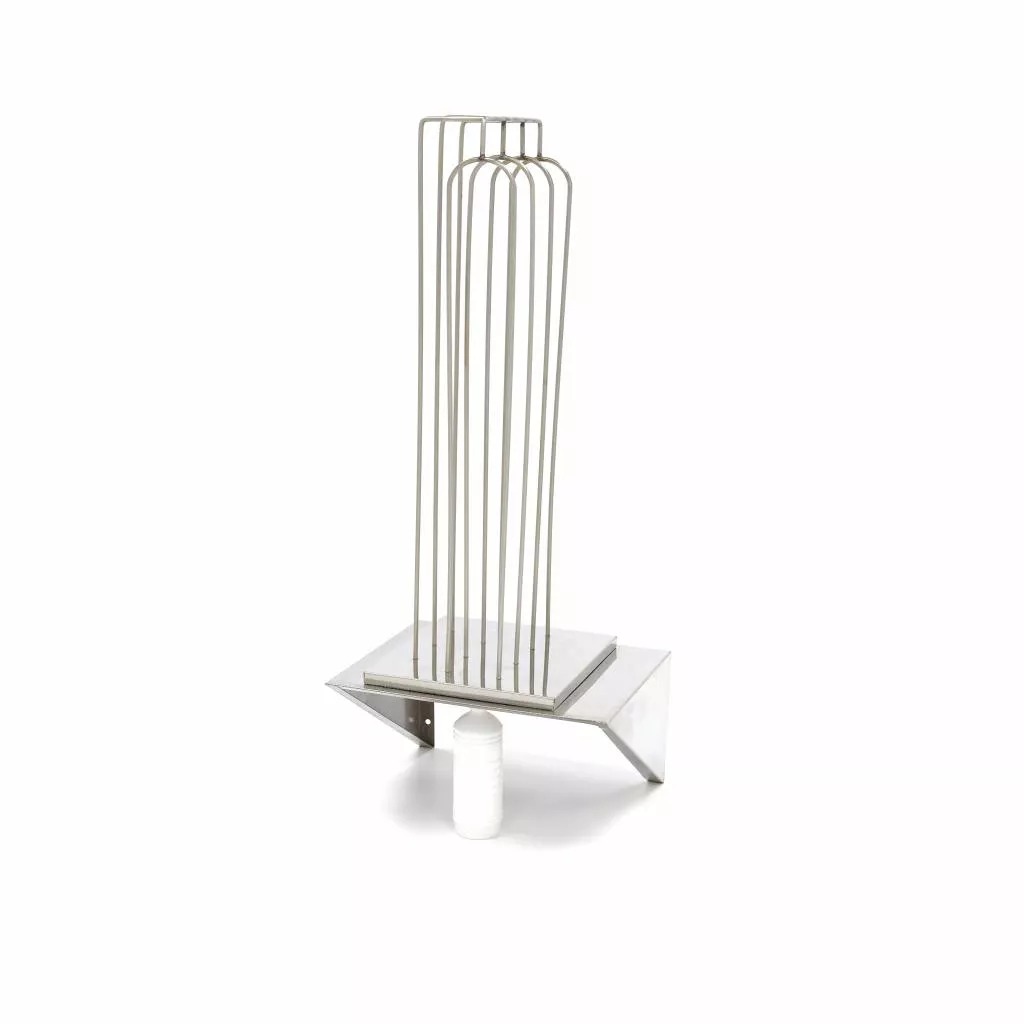 - Suportul poate fi montat pe baza unuia dintre storcătoarele noastre din inox pentru suc de portocale, astfel încât să aveți mereu suficiente sticle la îndemână.
