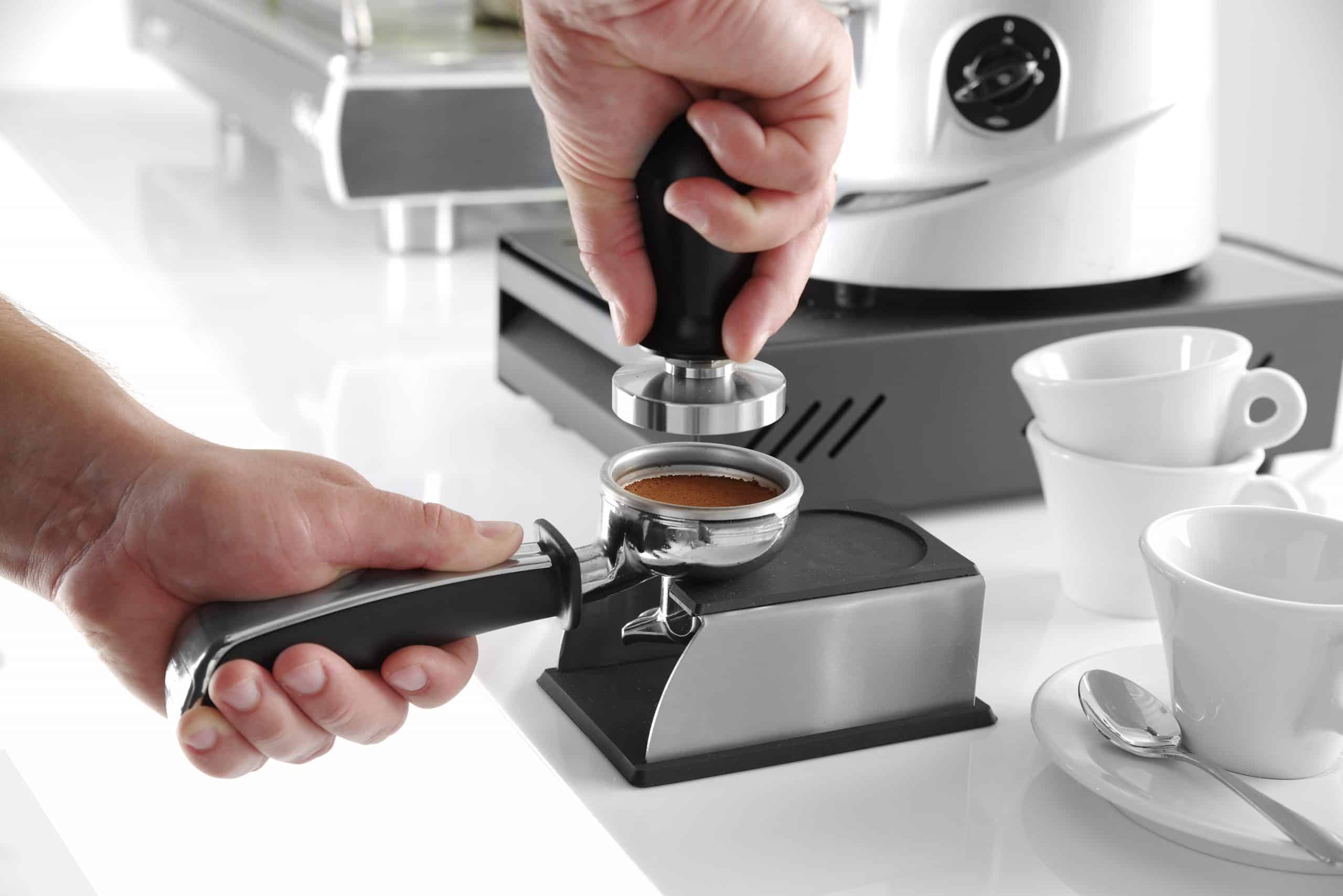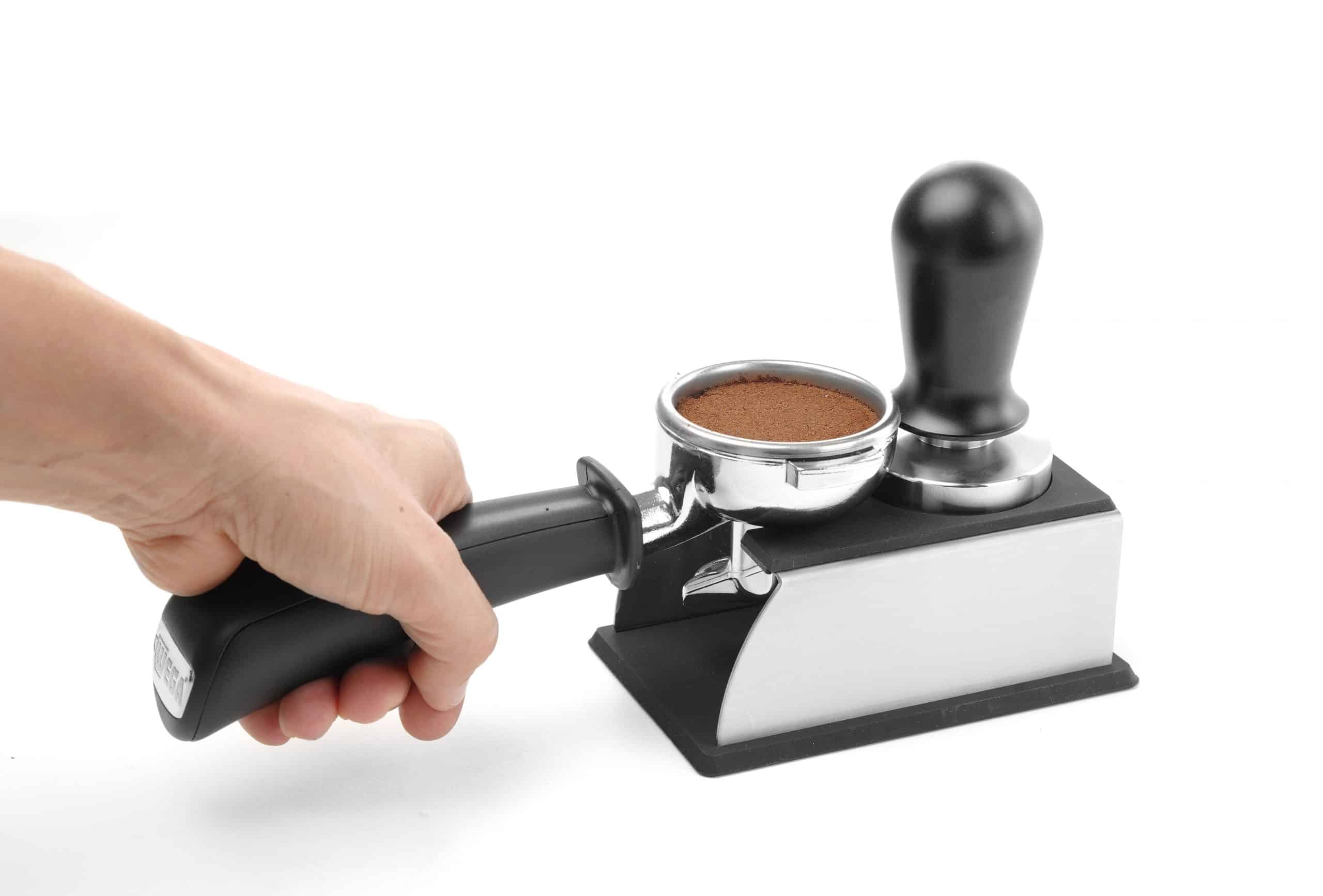- Cu decupaj pentru poziționarea portafiltrului în timpul presării