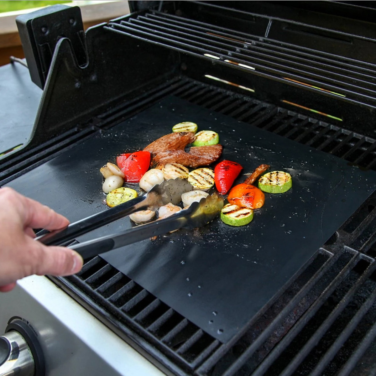 Suportul universal antiaderent pentru BBQ din fibră de sticlă acoperită cu teflon (PTFE + FGP) menține grătarul curat, alimentele nu cad în foc și gustul autentic de grătar rămâne intact. Grosimea de 0,2 mm este un compromis ideal între flexibilitate și rezistență – suportă până la 260 °C / 500 °F (pe termen scurt până la 300 °C).