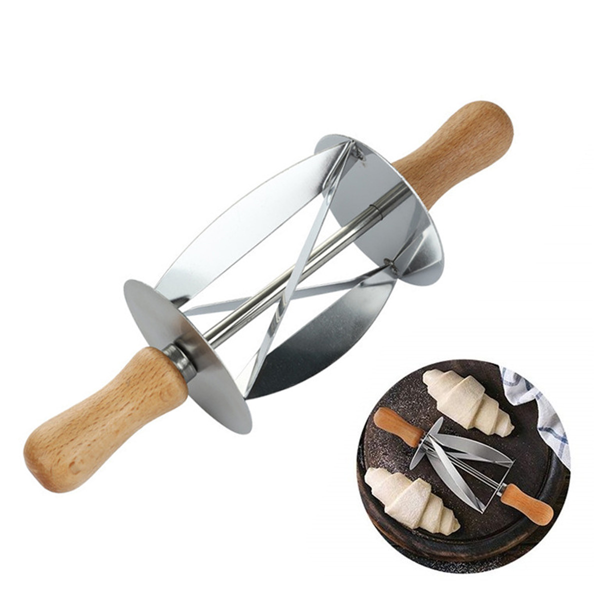 Tăietorul cu role pentru croissante este un ajutor excelent pentru orice pasionat de patiserie de casă. Dacă doriți o soluție simplă pentru a pregăti croissante acasă, tăietorul cu role pentru croissante sau pentru cornuri este alegerea potrivită. Ideal și ca un cadou pentru brutari și cofetari.