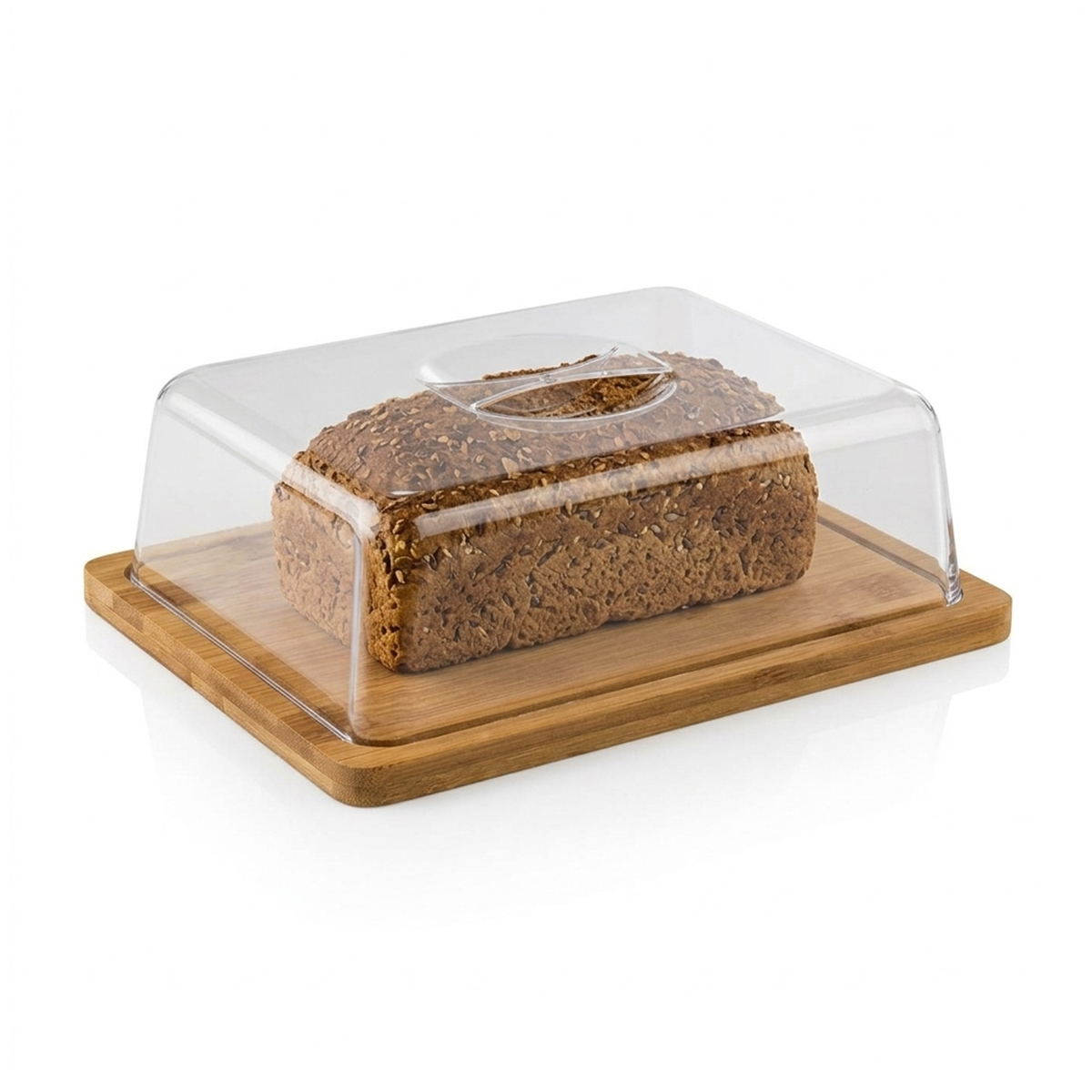 Capacul transparent permite vizualizarea rapidă a conținutului și protejează alimentele împotriva uscării, prafului și murdăriei. Mânerul practic situat în partea superioară a capacului asigură o manipulare comodă la servire și reumplere.