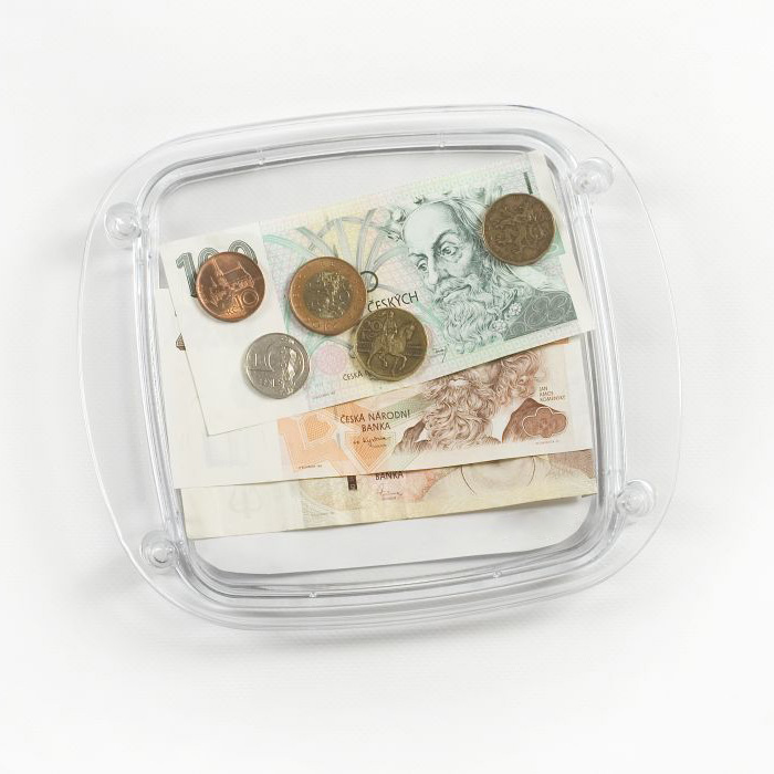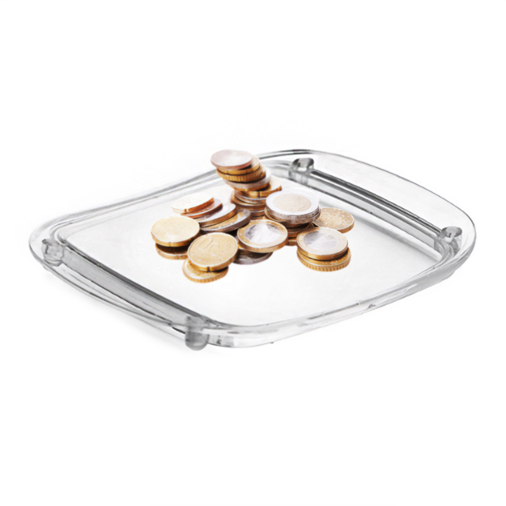Tavă practică și elegantă din plastic transparent, ideală nu doar pentru colectarea monedelor și bancnotelor, ci și pentru expunerea propriei reclame. Perfectă pentru magazine, restaurante, farmacii sau la casele de marcat, unde facilitează și eficientizează interacțiunea cu clienții.