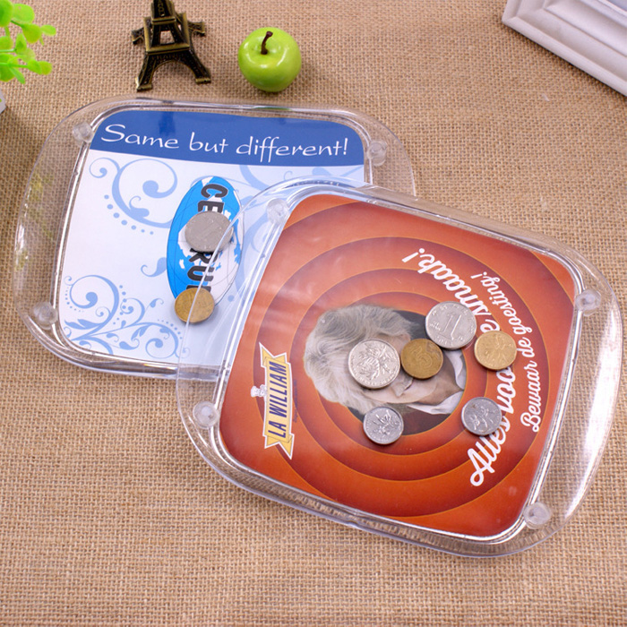 Tavă pentru monede / suport monede – transparent cu spațiu pentru reclamă