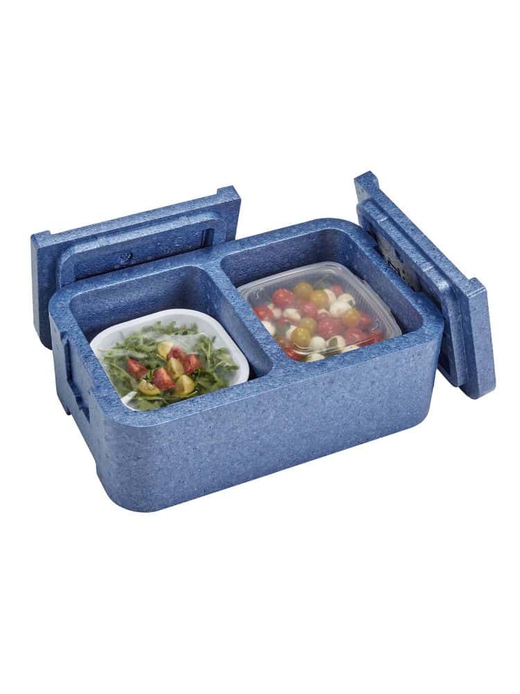 Cutia termoizolantă cu 2 compartimente Cam GoBox® de la Cambro este o soluție practică pentru transportul facil al meniurilor calde și reci în caserole de unică folosință. Recipientul alimentar este ideal pentru catering în școli, spitale și cămine de bătrâni.
