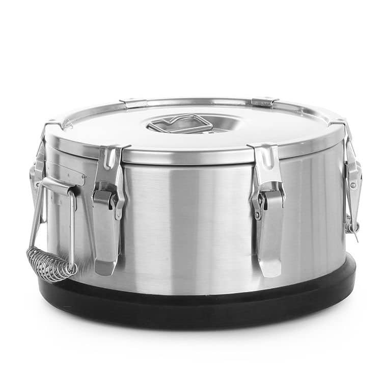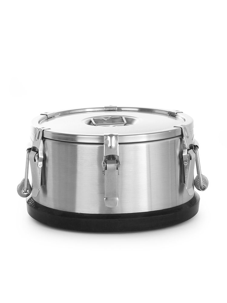 - Baza termosului este prevăzută cu un inel din cauciuc negru fixat cu șuruburi, facilitând stivuirea și protejând atât termosul, cât și suprafața de contact