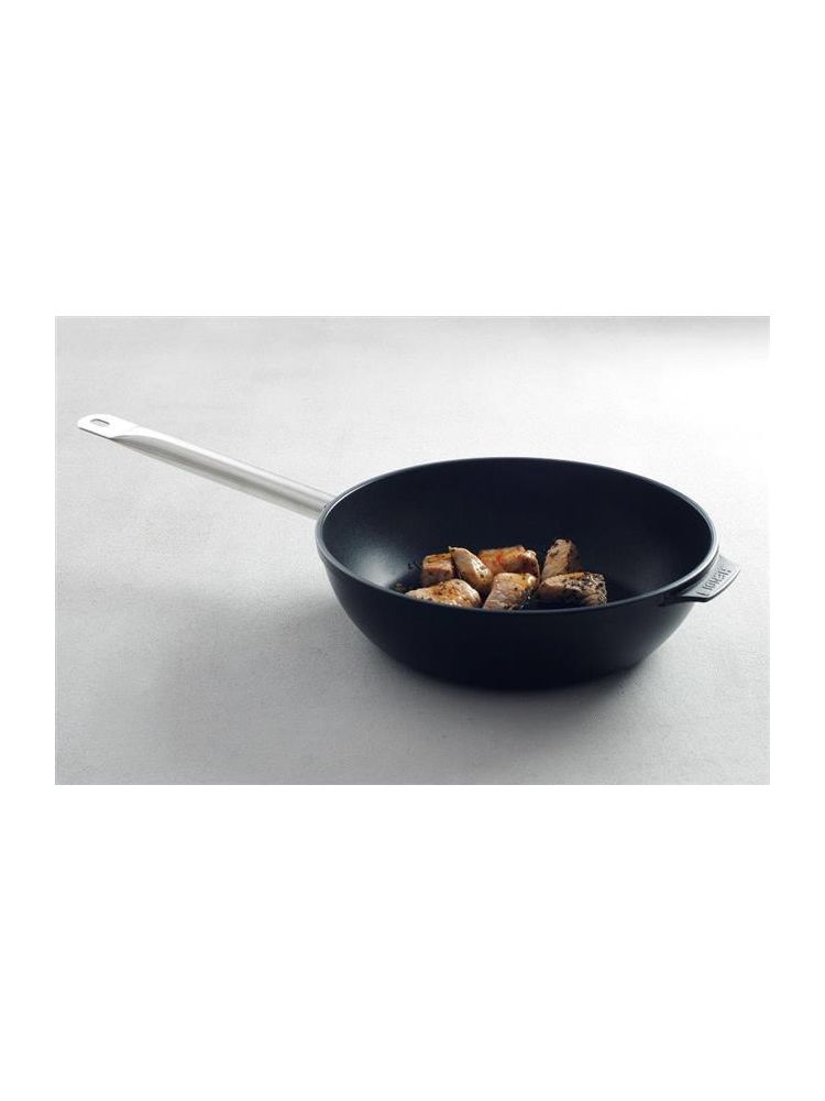 Tigaia din aluminiu cu strat de titan, adâncă Ø 280 mm | HENDI 629505 este fabricată din aluminiu, cu strat antiaderent din titan. Ideală pentru toate tipurile de aragaz, cu excepția plitelor cu inducție. Mânerul nu se încălzește, realizat din inox 18/10.