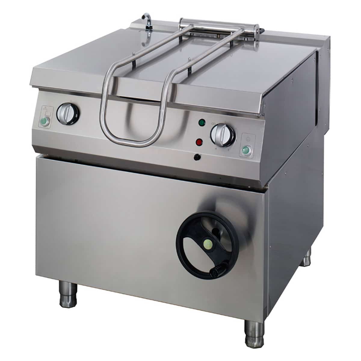 Această tigaie basculantă premium, robustă, are un volum de 130 litri. Este un echipament multifuncțional, ideal pentru prăjire, coacere, sotare și fierbere. Încălziți tigaia și puneți ingredientele în cuva interioară finisată neted. Când preparatul este gata, folosiți rotița frontală pentru a înclina cuva spre dumneavoastră. Astfel, puteți scoate sau scurge foarte ușor mâncarea în timpul gătitului. Finisajul din inox și colțurile rotunjite facilitează curățarea tigăii.