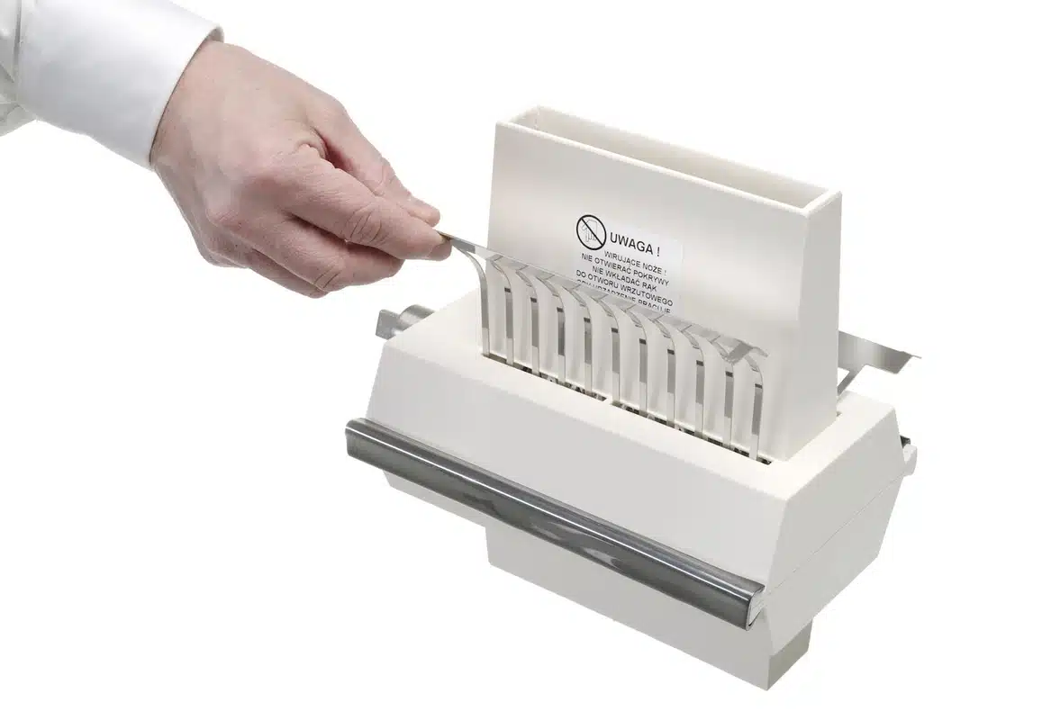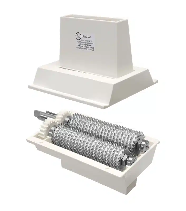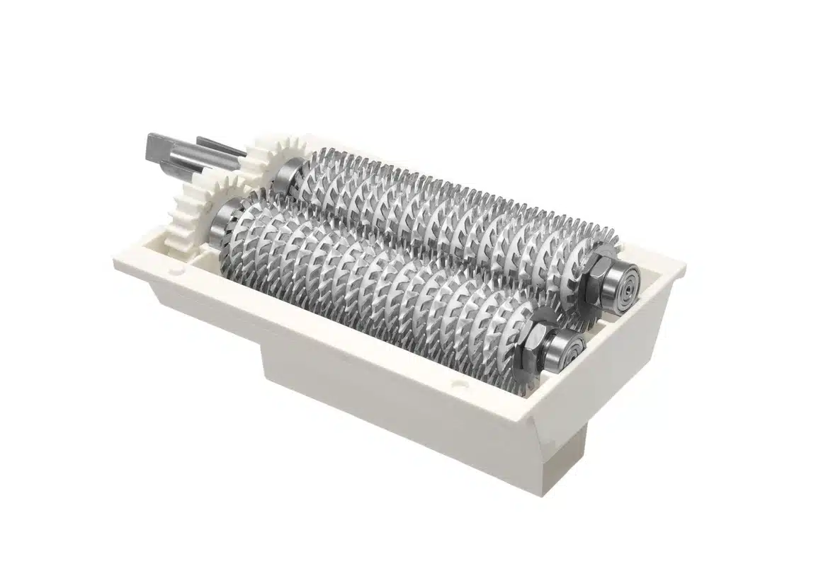 - Elemente speciale tip „pieptene” previn înfășurarea cărnii pe rolele cuțitului