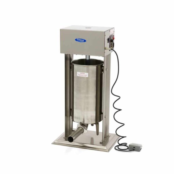 Umplutorul automat vertical pentru cârnați – 15 l – 4 tuburi de umplere | Maxima 09300457 este un echipament profesional pentru HoReCa, fabricat integral din inox, conform celor mai stricte standarde internaționale de igienă. Acest model este livrat cu 4 tuburi de umplere din inox de 16, 22, 32 și 38 mm. Mai jos găsiți toate caracteristicile umplutorului automat vertical pentru cârnați – 15 l – 4 tuburi de umplere | Maxima 09300457: