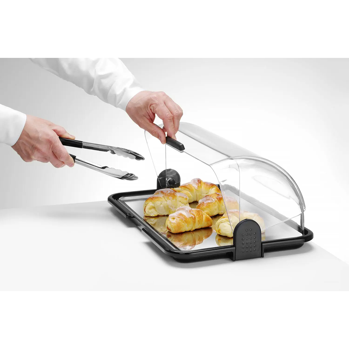 - Utilizare comodă – capacul transparent cu rulare permite acces din ambele părți pentru servire ușoară