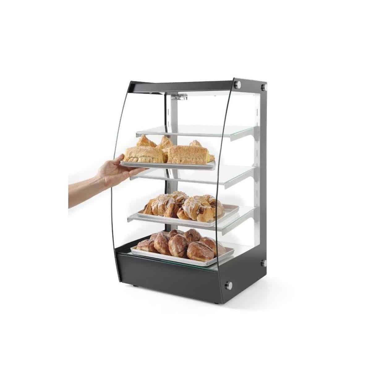 Vitrina deschisă – 75 L | Hendi 233092 este ideală pentru restaurante, cafenele, benzinării sau cantine pentru expunerea oricărui tip de produse care nu necesită condiții speciale de refrigerare, precum dulciuri ambalate, biscuiți, produse de patiserie, chifle etc.