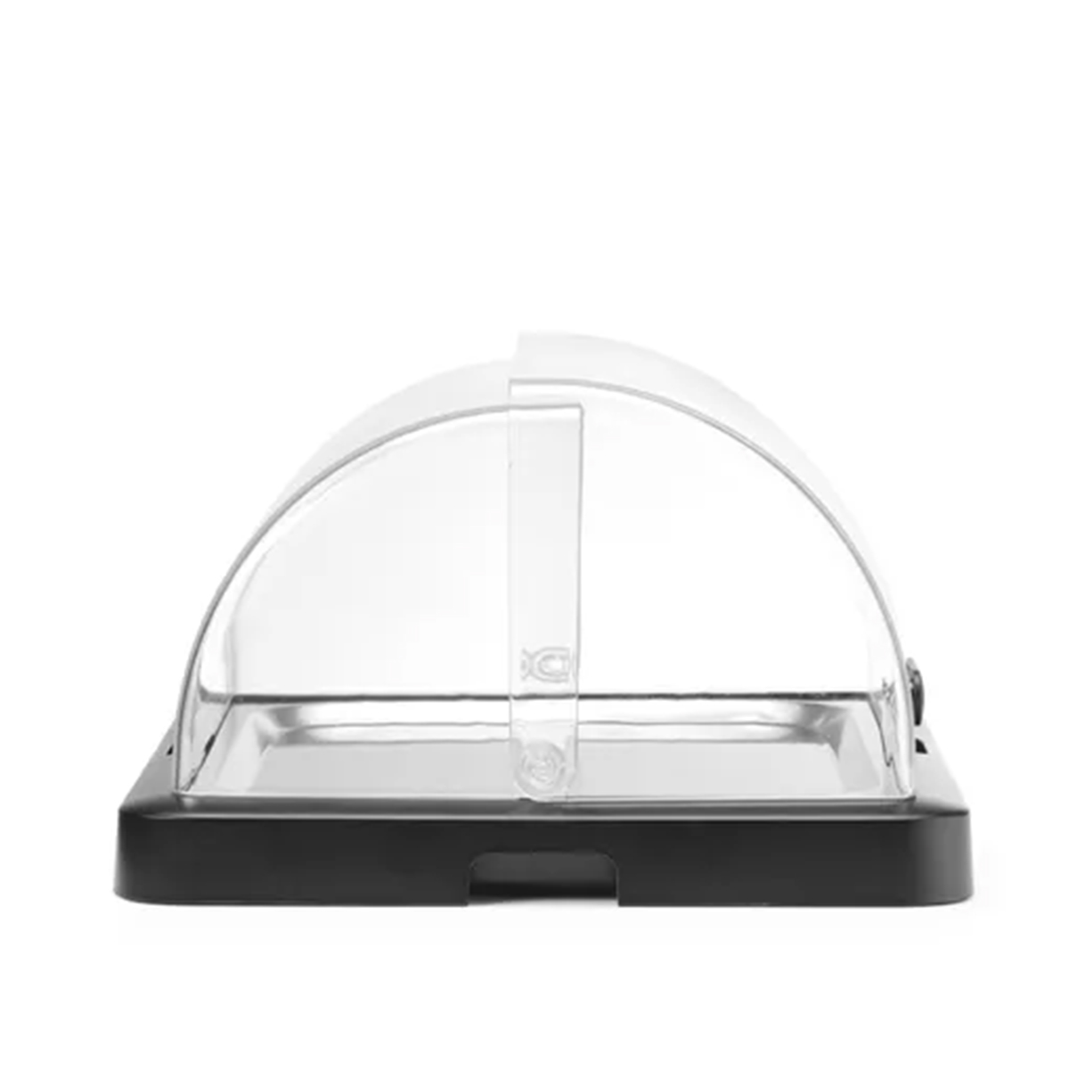 - Capacul transparent tip Rolltop permite prezentarea estetică și accesul facil la preparate.
