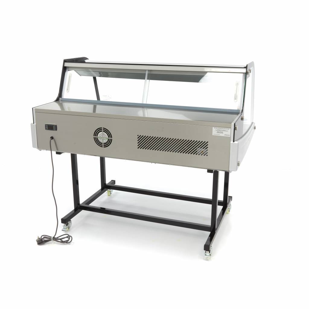 Dacă doriți să vă extindeți rapid și eficient capacitatea de refrigerare, această vitrină frigorifică mobilă cu suport este soluția ideală. Este perfectă și atunci când nu mai aveți spațiu pe tejghea. Această vitrină frigorifică cu cărucior are un volum de 255 litri și este potrivită pentru tăvi gastro. Dimensiunile compatibile sunt 3 tăvi 1/1 GN și 2 tăvi 1/4 GN cu o adâncime maximă de 15 cm.