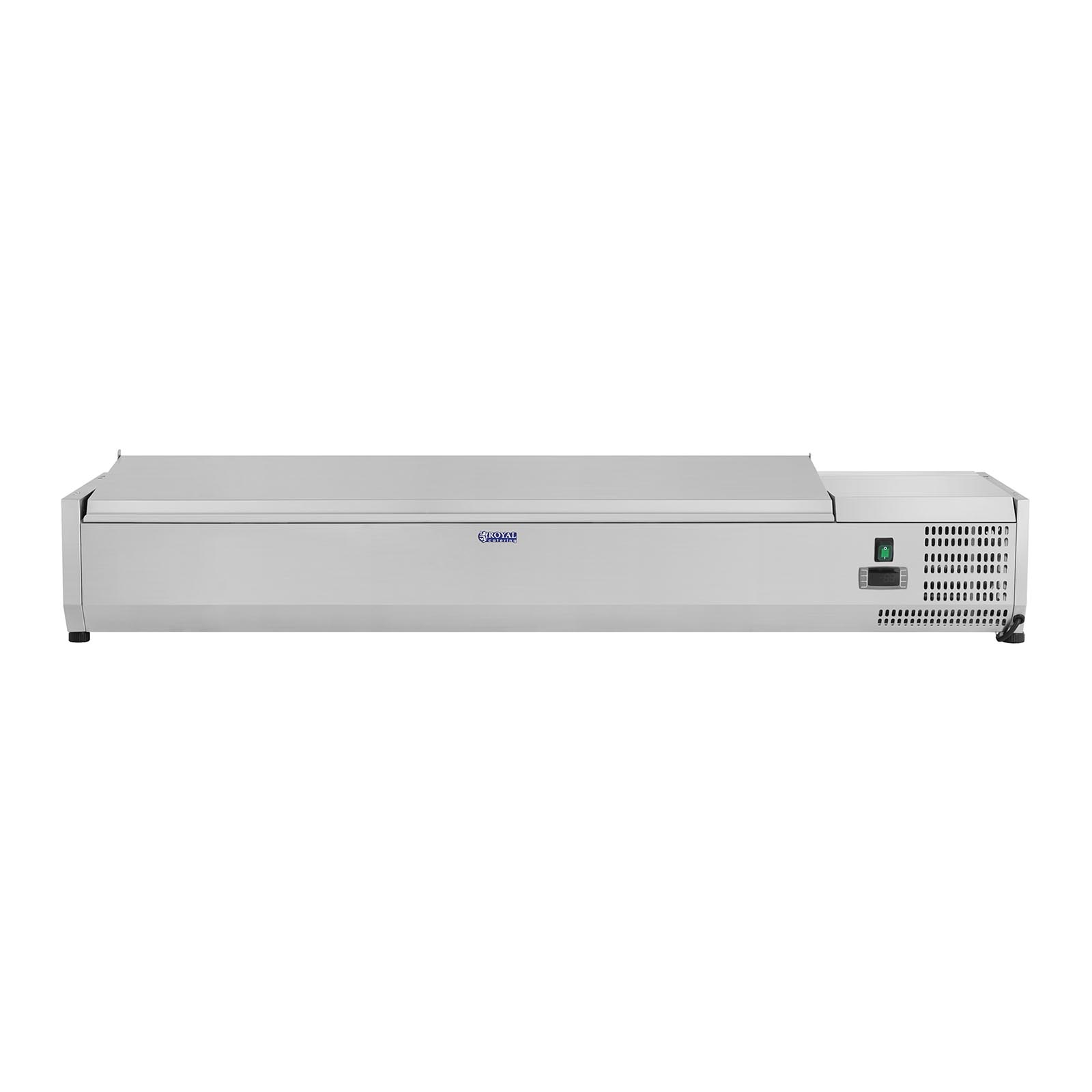 Vitrina frigorifică GN – 150 x 33 cm – 7 tăvi GN 1/4 | RCKV-150/33-7S asigură păstrarea alimentelor mereu proaspete și atractive, fiind menținute la rece pentru servire sau procesare ulterioară. Acest echipament profesional de la Royal Catering este conceput pentru restaurante, cafenele, cofetării, fast-food-uri, hoteluri și alte unități HoReCa. Este ideală și pentru pizzerii sau baruri de salate.