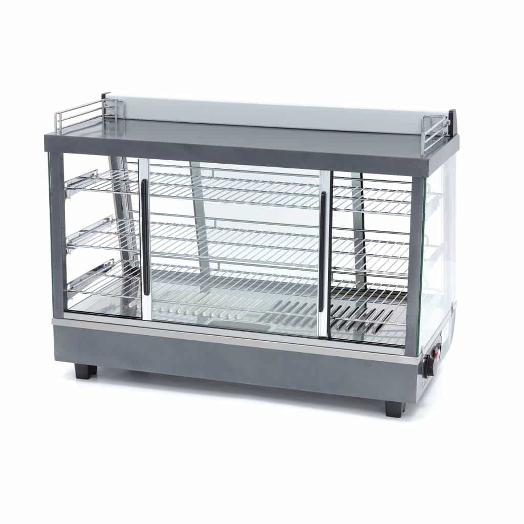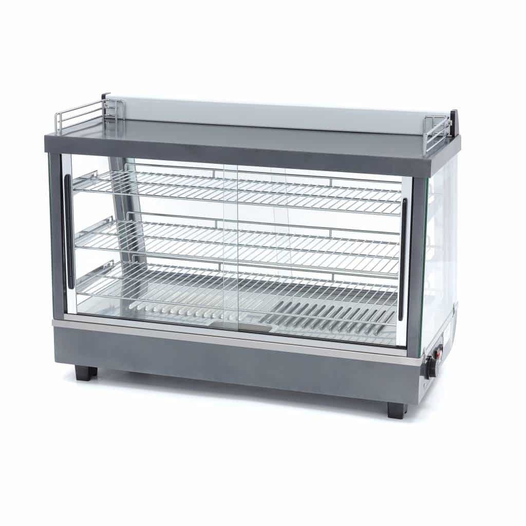 Modelul 09400790 este un echipament profesional conceput pentru menținerea sandvișurilor sau gustărilor la temperatura optimă. Acest model are uși frumoase din sticlă atât în față, cât și în spate. Temperatura este reglabilă continuu între 30-90°C. Această vitrină termică are o lățime de 915 mm.