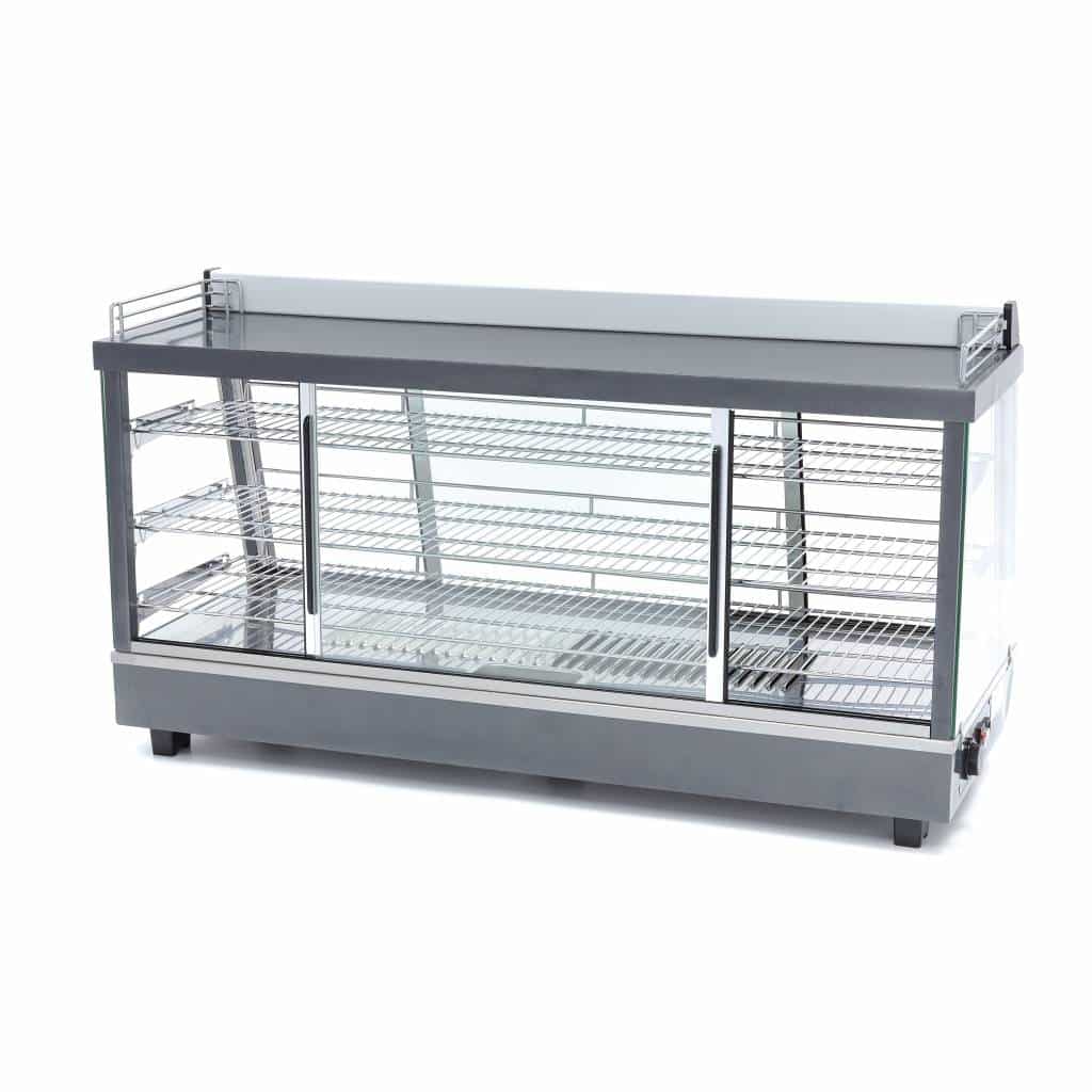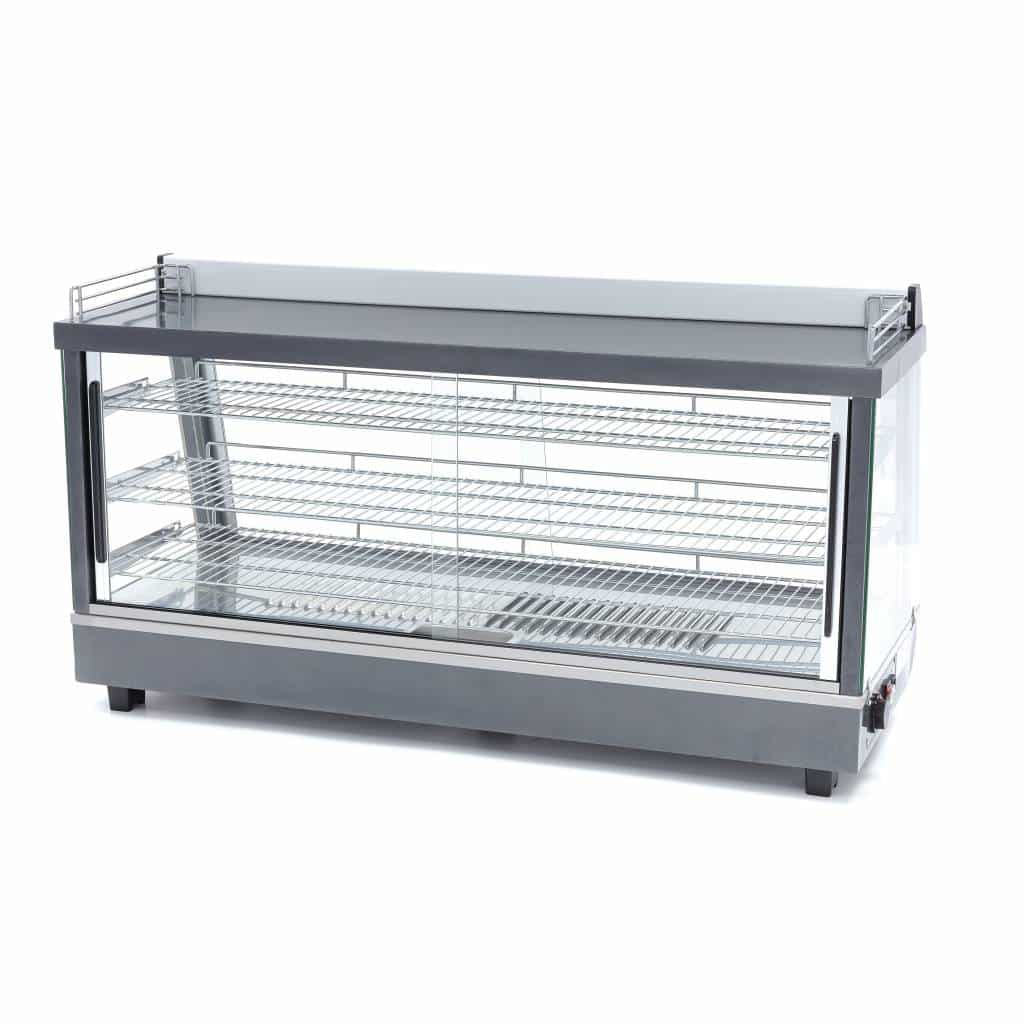 Vitrina termică – 3 rafturi – 186 L | Maxima 09400795 este un echipament profesional conceput pentru menținerea sandvișurilor sau gustărilor la temperatura optimă. Acest model dispune de uși din sticlă elegante atât în față, cât și în spate. Temperatura este reglabilă continuu între 30-90°C. Această vitrină termică are o lățime de 1215 mm.